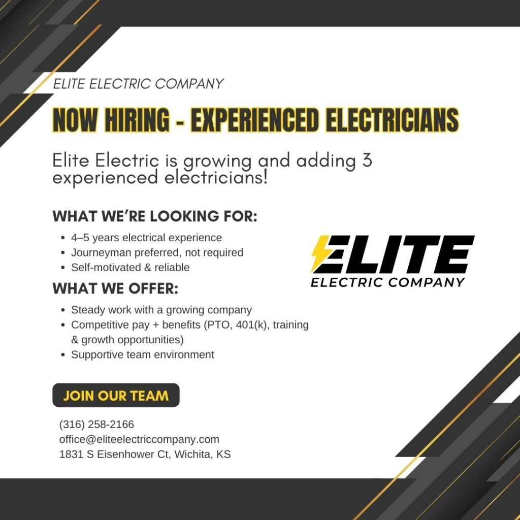 No matter where you are in your career, Elite Electric has a path built for you. From entry-level apprenticeships to seasoned leadership roles, we match your ambition with real opportunity right here in Kansas.